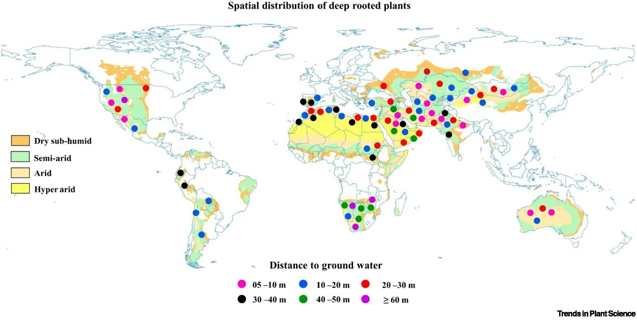 ????深根植物是干旱地區(qū)重要的“生態(tài)工程師”,通過根系快速生長和水力提升等獨特適應(yīng)性來穩(wěn)定土壤、固存碳匯并產(chǎn)生社會經(jīng)濟收益。盡管生命力頑強,深根系植物正面臨氣候變化與人類活動加劇的雙重威脅。