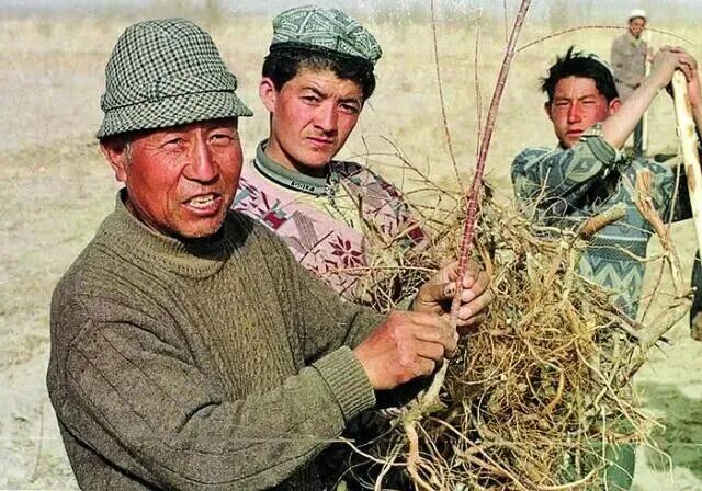 ????1995年,已退休的劉銘庭收到于田縣政府的邀請信,希望他能指導(dǎo)名貴中藥材大蕓的種植技術(shù),帶動當(dāng)?shù)厝罕娫鍪罩赂弧懲ゲ活檭号畡褡?,帶著妻子儲惠芳與畢生積蓄來到于田縣奧依托格拉克鄉(xiāng),在沙堆中開辟出一塊試驗地,開始試種大蕓。試驗地三面環(huán)沙,條件非常艱苦,住的是簡易板房,喝的水是從很遠地方拉來的澇壩水。老伴儲惠芳因勞動強度大瘦了8公斤。