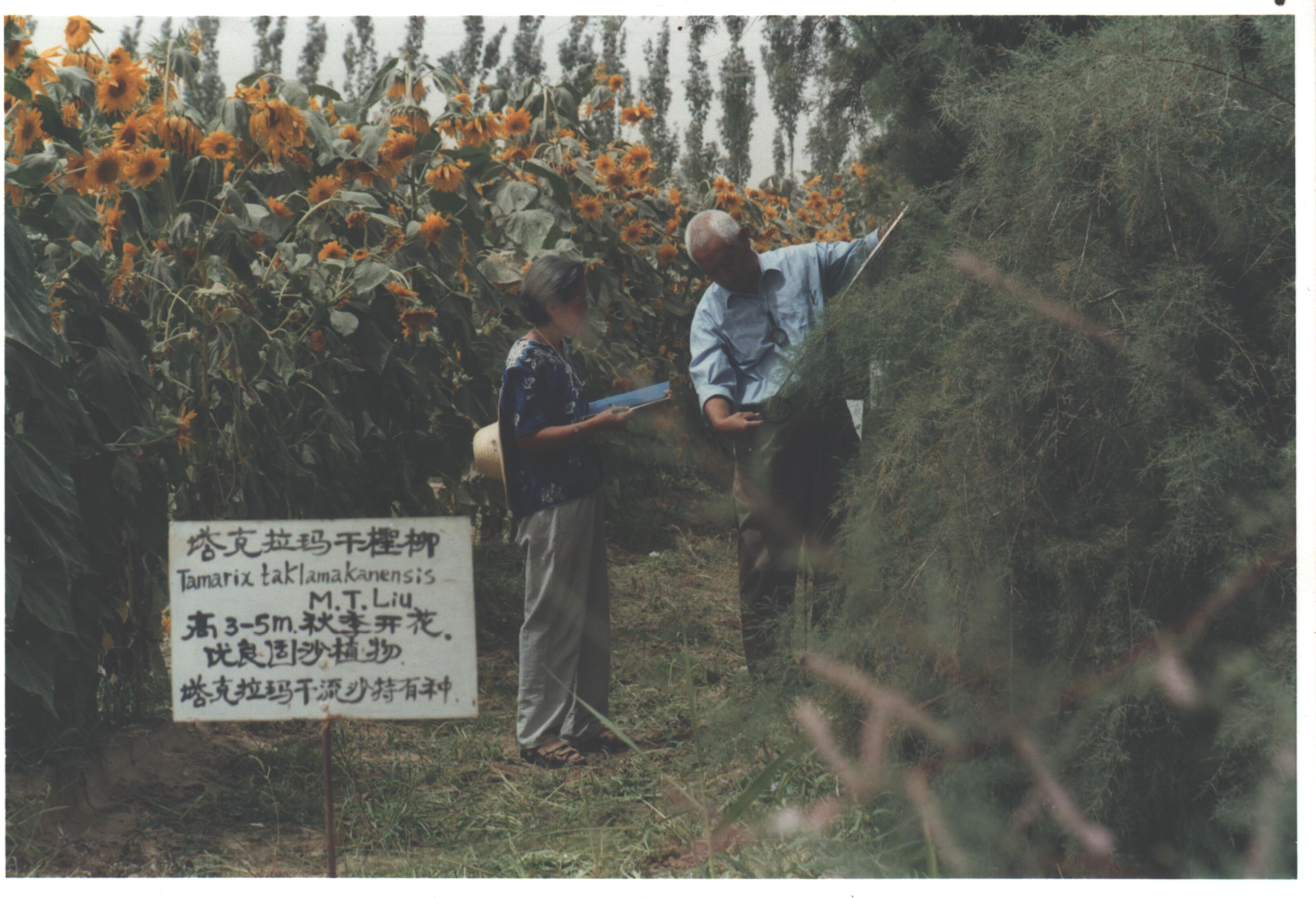 ????1959年,劉銘庭加入塔克拉瑪干沙漠綜合科學(xué)考察隊,在一次考察中,他被一片流沙半埋的灌木叢所吸引,這些枝條纖細(xì)堅硬、退化葉貼枝,長相明顯異于常見的紅柳,他認(rèn)為或許是從未發(fā)現(xiàn)的新種,最初起名沙生檉柳。