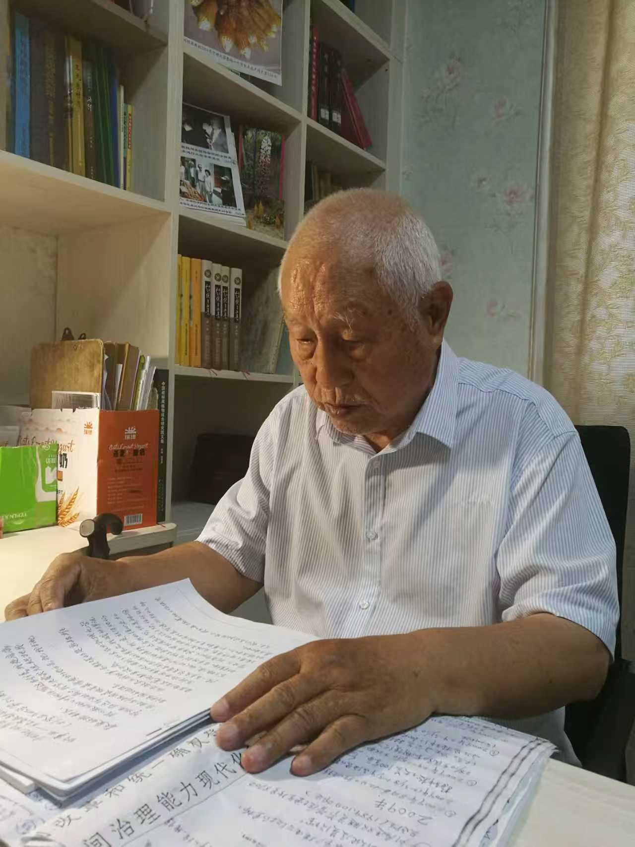 劉銘庭先生在家讀書。劉渠華供圖